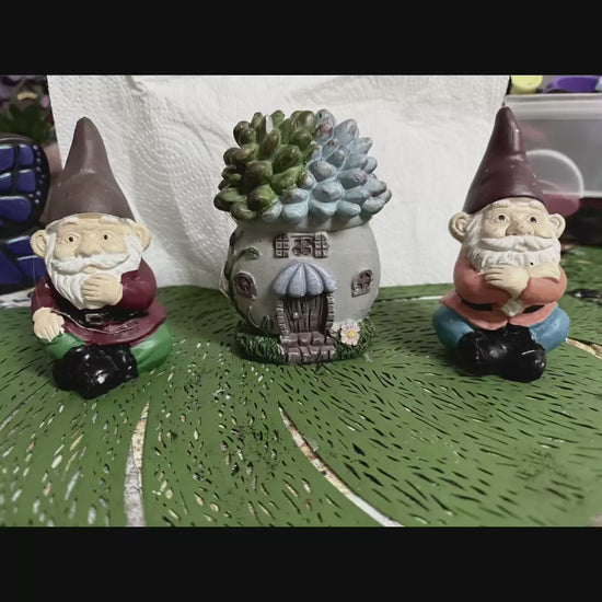 Get ready to add some quirky charm to your garden with these Goblin Gnomes! These hand-painted gnomes feature a gothic style fairy house, adding a touch of spookiness to your outdoor space. A unique addition for any gnome collector.