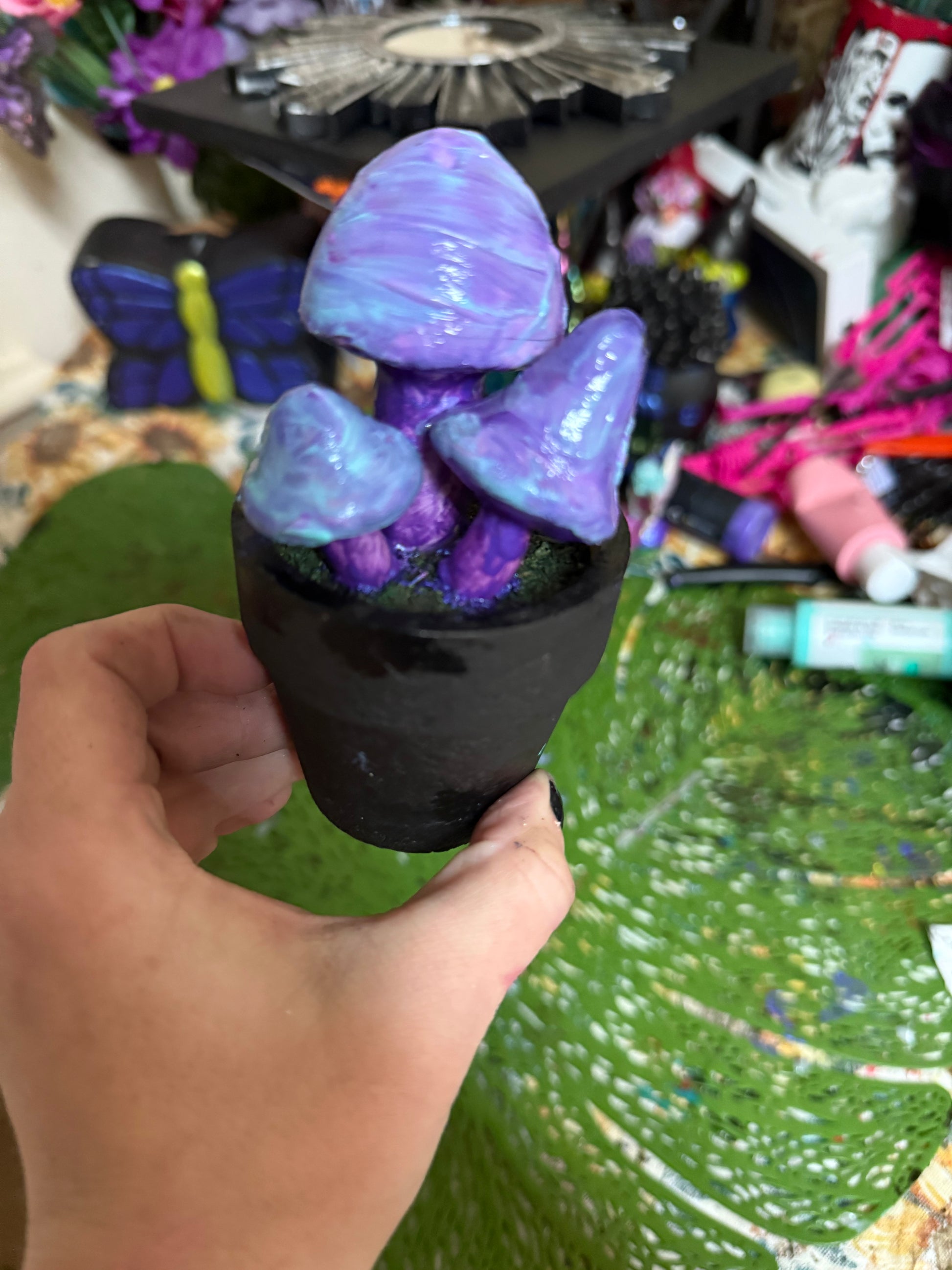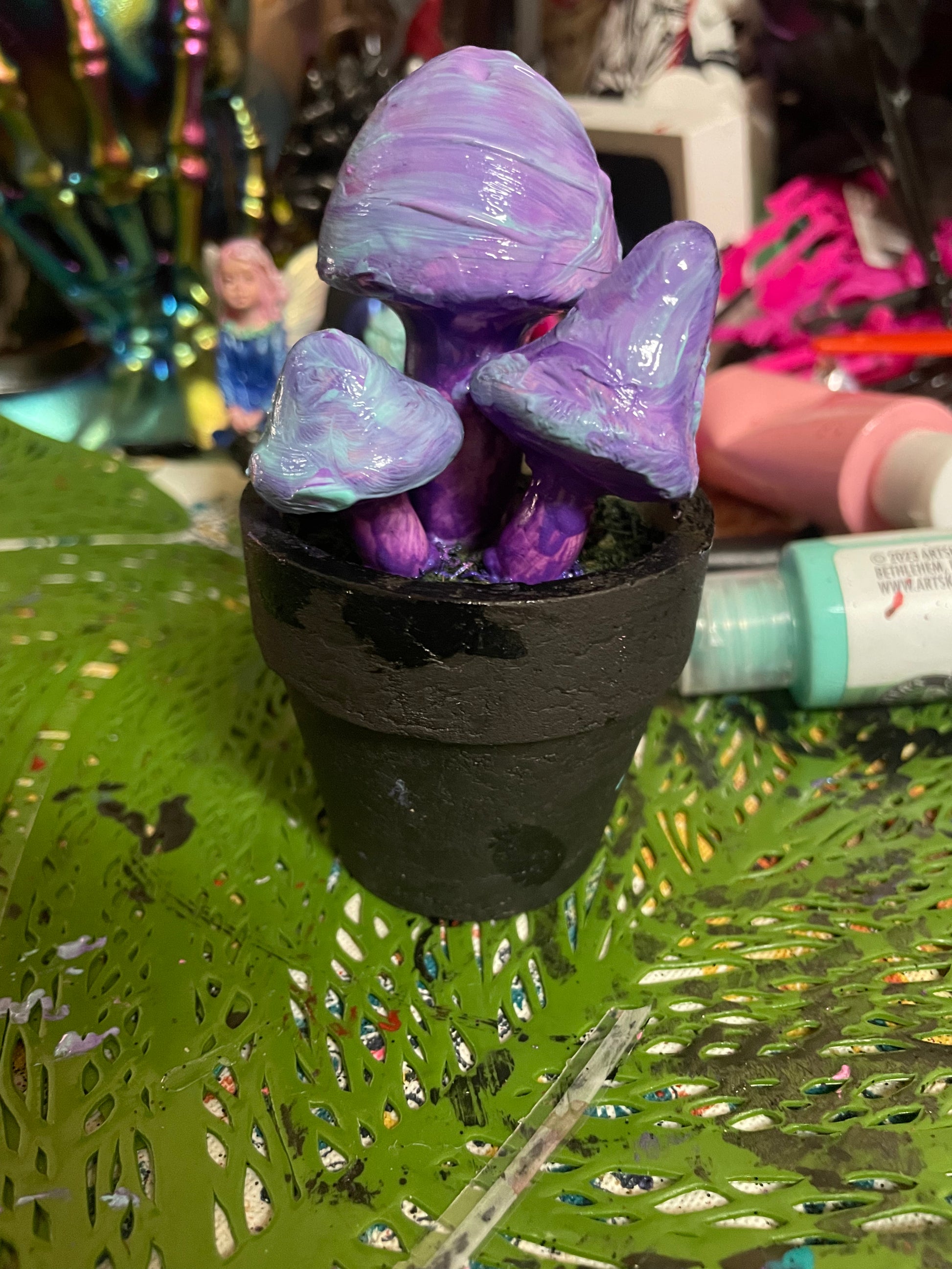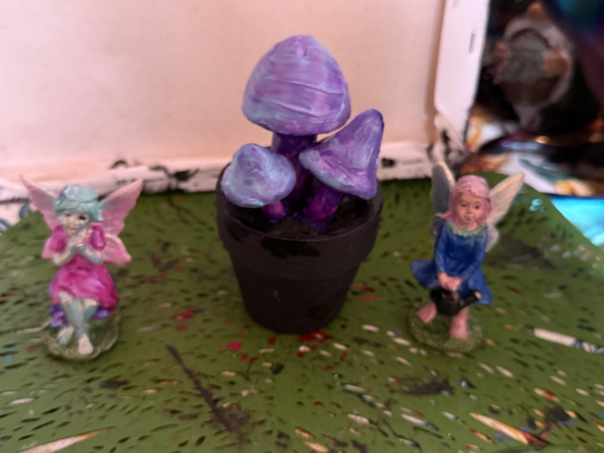 Discover the enchanting charm of this gothic style fairy and mushroom hand-painted piece. With whimsical details and dark fantasy flair, it brings a playful twist to your decor. Perfect for adding a touch of magic and mystery to any space.