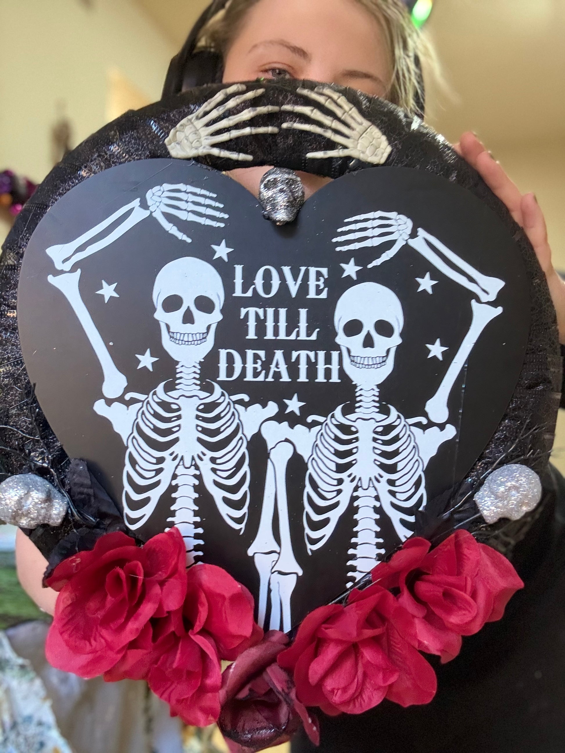 "Add some spooky charm to your home with our Medium size wreath Skelton style! 💀 This festive wreath will add a touch of whimsical horror to any door or wall. Perfect for Halloween or year-round for those who embrace the macabre. 🎃"