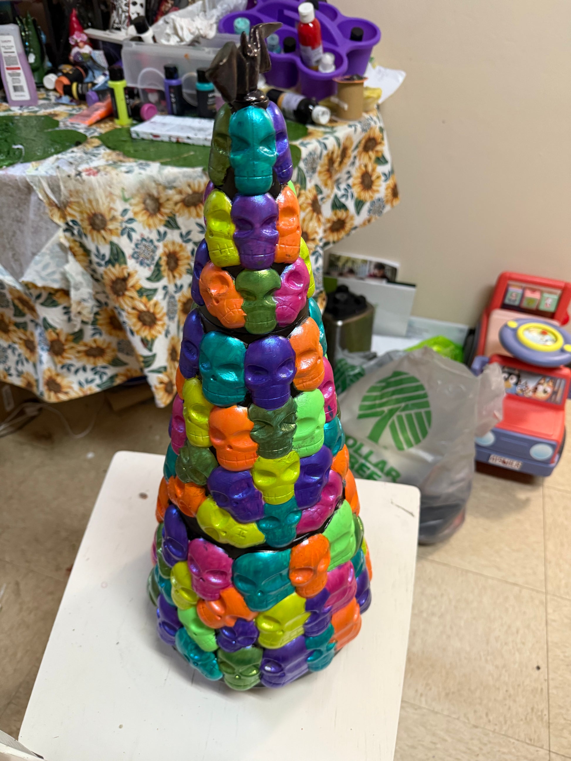 Skeleton skull Halloween Christmas tree (plastic) hand painted